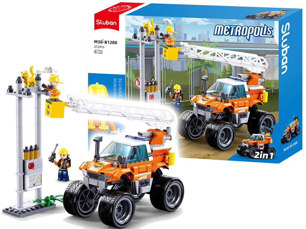 Inovatívna stavebnica Sluban je možné kombinovať s podobnými stavebnicami mnohých ďalších významných výrobcov. Sú vyrábané z kvalitného, neškodného a odolného ABS plastu. Každá stavebnica je vybavená návodom na zostavenie a balená v pestro potlačenej papierovej krabičke. Hlavné vlastnosti: 272 dielikov, 2 figúrkyinovatívne figúrky s otáčavými aj výkyvnými časťami tielkompatibilné so stavebnicami ďalších výrobcov