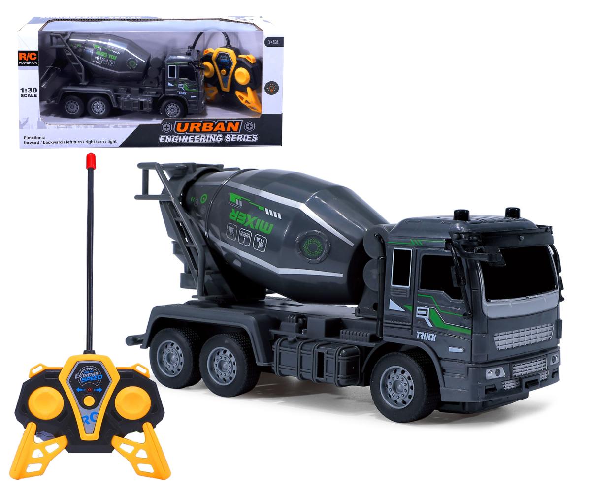 Domiešavač 1:30 na diaľkové ovládanie. Auto svieti, jazdí dopredu, dozadu, doľava a doprava. Manuálne krútenie bubna. Hračka vyžaduje 3ks 1,5V batérií typu AA, ktoré nie sú súčasťou balenia. Ovládač vyžaduje 2ks 1,5V batérií typu AA, ktoré tiež nie sú súčasťou balenia. Nevhodné pre deti do 3rokov.