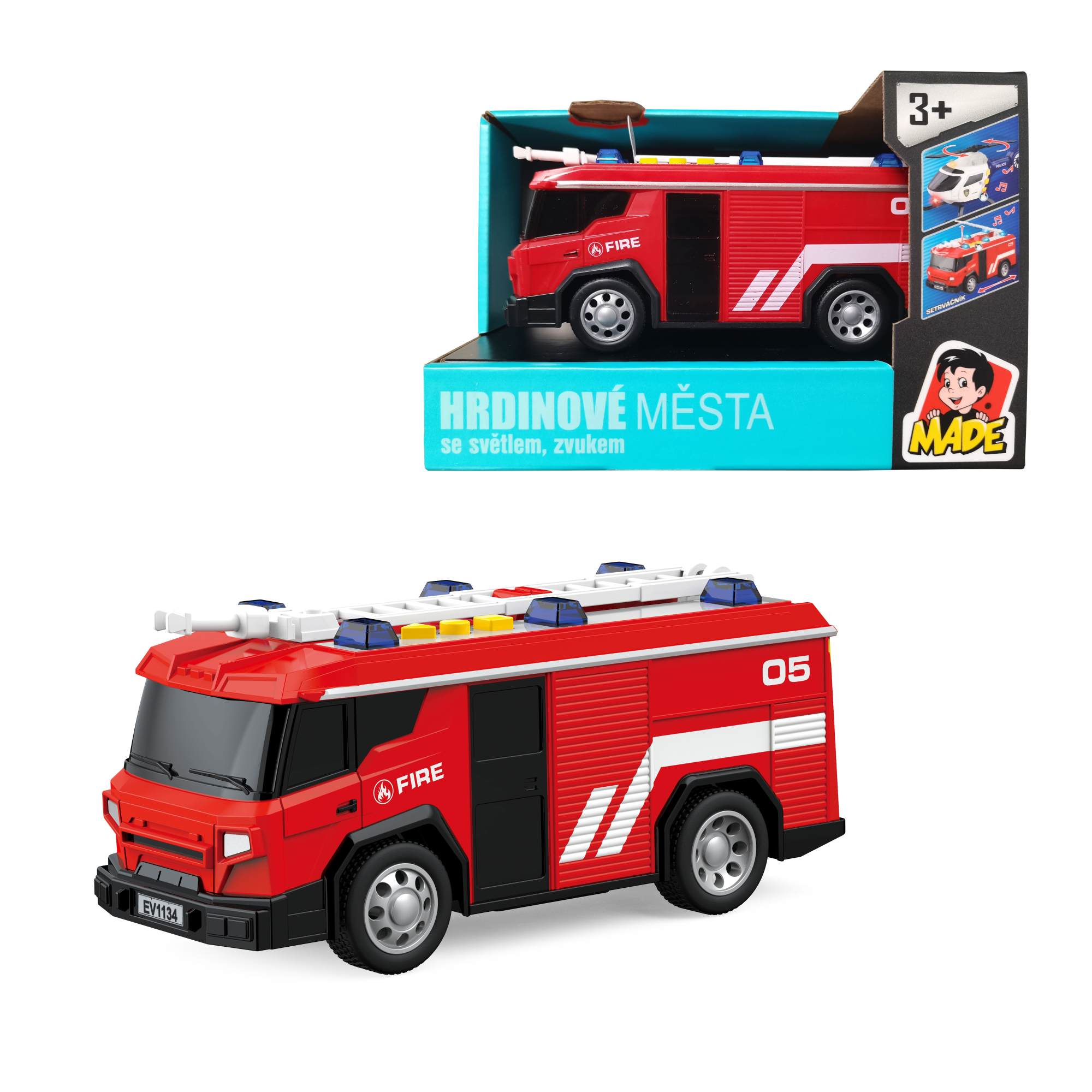 Toto autíčko hasiči vo veľkosti 1:24 je vyrobené z kvalitného plastu a dodávané v otvorenom boxe. S rozmermi 16 x 6 x 7,5 cm je ideálny pre malých chlapcov od 3 rokov. Hračka je vybavená 3 batériami typu AG13, ktoré sú súčasťou balenia. Autíčko hasiči je dostupné v jednej farbe a ponúka skvelú zábavu pre malých hasičov v detskej izbe. Buďte pripravení na dobrodružstvo plnej akcie s týmto detailne spracovaným autom hasičov.