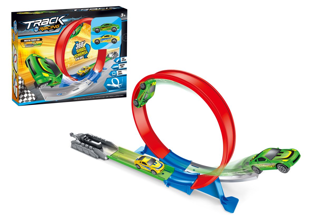 Ktoré z autíčok prejde dráhu rýchlejšie? Vystreľovacia autodráha s dvoma autíčkami. Nevhodné pre deti do 3 rokov. Rozmer dráhy - 51,5 x 10 x 24cm