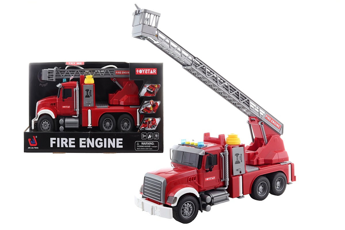 Auto veľké hasičské. Napájanie na 3x AG13 batérie, ktoré sú súčasťou balenia. Auto má na streche 3 tlačidlá s funkciami-trúbenie, zvuk motora a štartovanie. Auto je možné reálne používať na vodu. Materiál plast, kolesá sú pogumované. Auto je na zotrvačník. Balené v otvorenej krabici. Rozmery balenia cca 42x21x14 cm. Rozmery auta 34x18x13 cm. Vek 3+