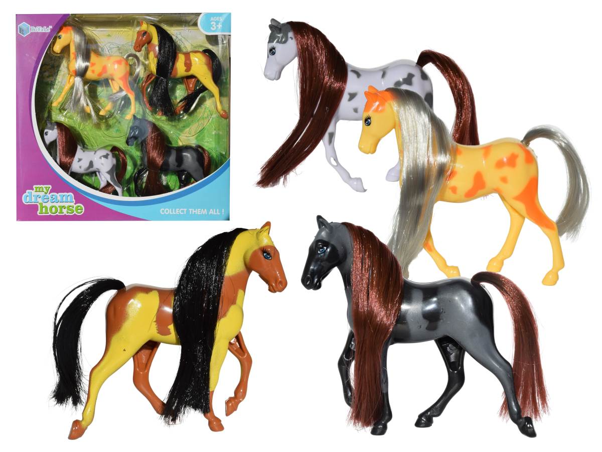 Sprav si svoj vlastný žrebčín. Balenie obsahuje štyri koníky s hrivou. Nevhodné pre deti do 3 rokov.