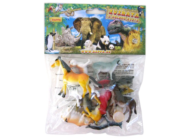 V balení nájdeš 12 ks rôznych domácich zvieratiek, ako je kohút, mačka, krava, hus a iné.