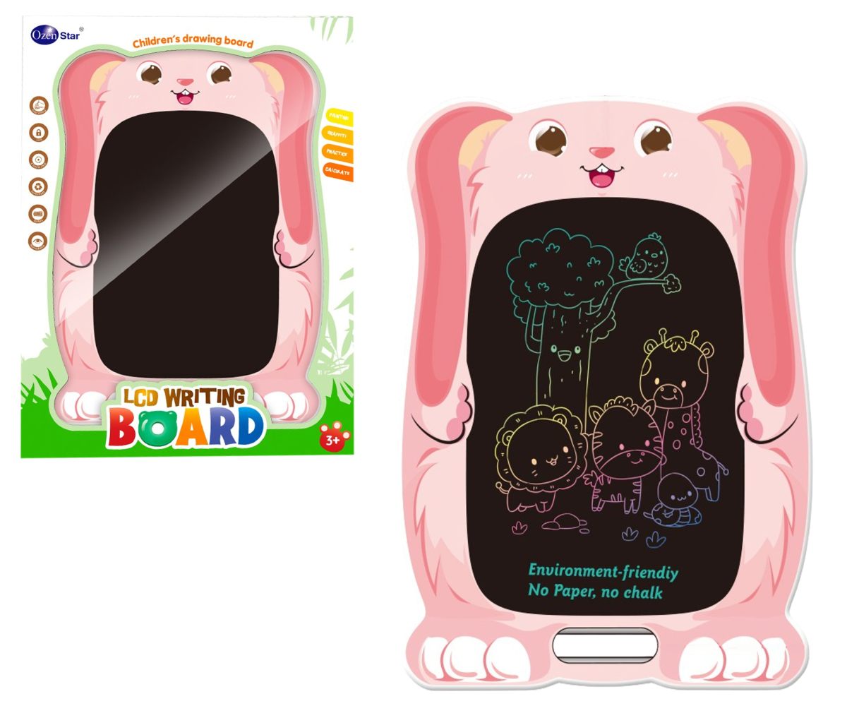 Farebná kresliaca tabuľka v tvare zajačika. Napíš odkaz alebo len tak si kresli. Po stlačení ňufáčika ostane tabuľka čistá na ďalšie používanie. Hračka vyžaduje 1ks batérie typu CR2025, ktorá je súčasťou balenia. Nevhodné pre deti do 3 rokov.
