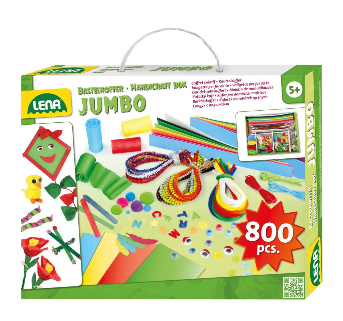 Kufríček pre malých kutilov obsahuje farebný papier, diely z penovej gumy, čističe fajok, krútiace oči, bambulky, crepový papier, farebné tyčinky od nanuku, gombíky a mnoho ďalšieho. Rozmer: 35x5x26 cm