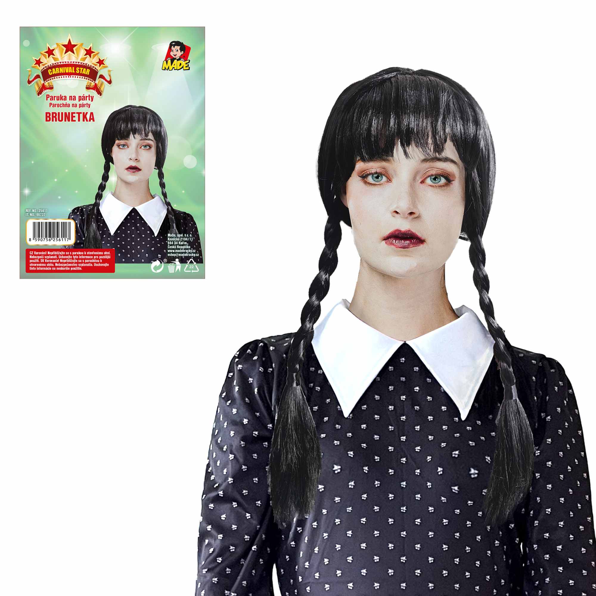 Nenechajte si ujsť príležitosť vyskúšať túto čiernu parochňu Wig a pridať do svojho outfitu štipku elegancie a štýlu. Buďte stredobodom pozornosti s týmto dokonalým doplnkom pre všetky vekové kategórie. Pre deti 3+.