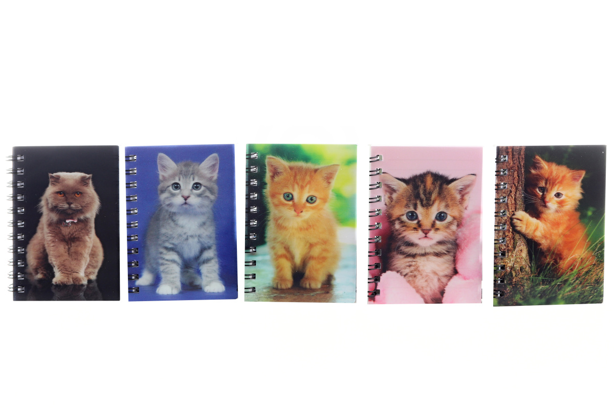 Zápisník s 3D efektom s motívom mačky. Zápisník je podšitý. Rozmery 7x10 cm. Viac dúhy - dodávame podľa skladovej dostupnosti. Výrobok nie je hračka.