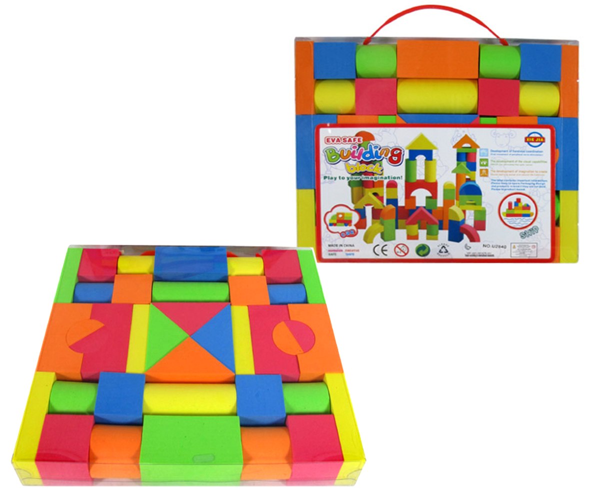 Penové kocky rôznych farieb a tvarov. Balenie obsahuje 38ks. Nevhodné pre deti do 3 rokov.