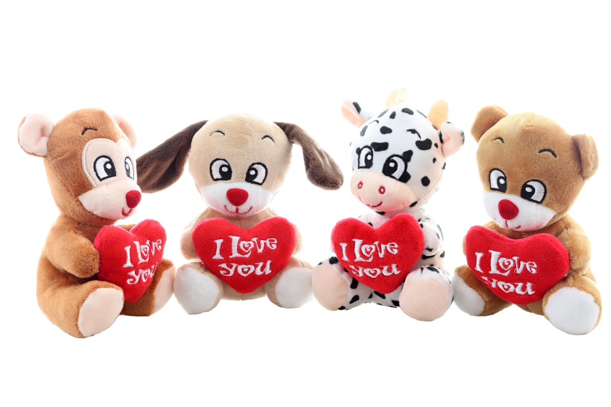Plyšové zvieratko so srdiečkom o rozmeroch cca 14x10x8 cm. 4 druhy - dodávame podľa skladovej dostupnosti. Vek 0+