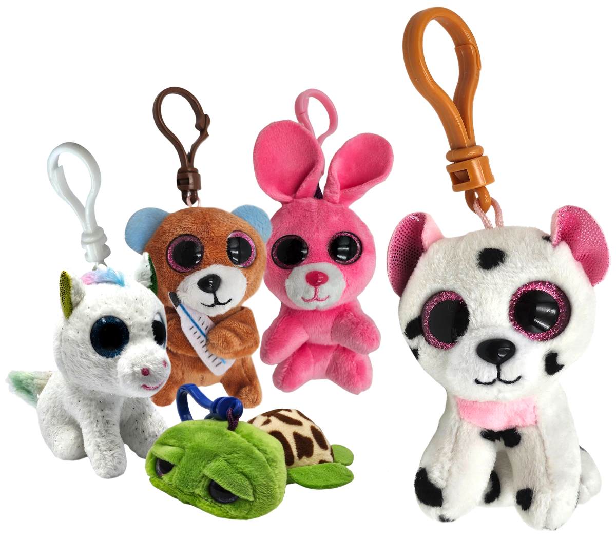 Plyšový 8,5cm prívesok - okaté zvieratko. Možnosť výberu z piatich druhov - zajačik, korytnačka, jednorožec, medvedík alebo dalmatínec.