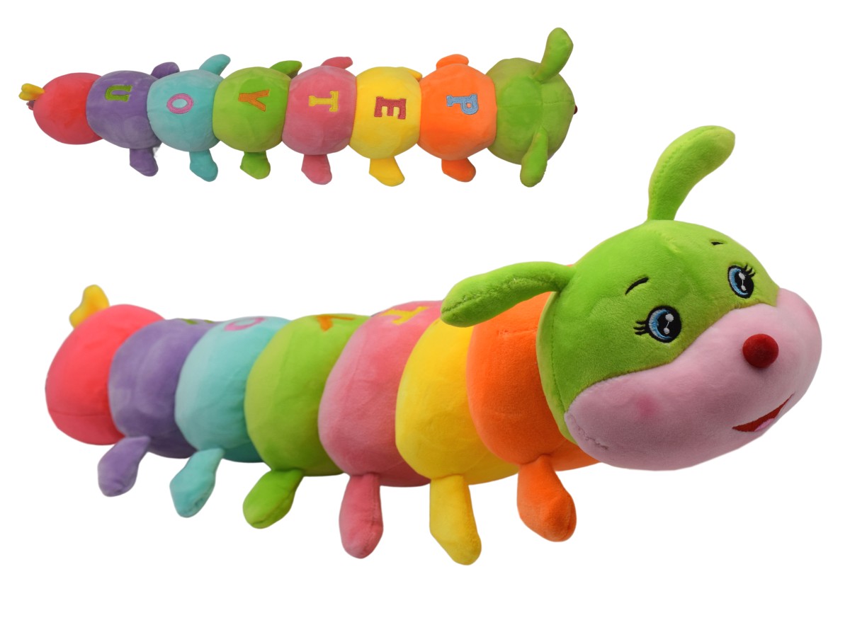 Plyšová 70cm stonožka s vyšitými písmenkami. Vhodná aj ako dekorácia.