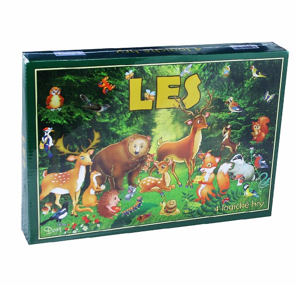 LES 4 logické hry. Súbor náučno-spoločenských hier obsahuje komponenty pre 4 základné hry pre deti od 4 rokov. Pomocou týchto hier získajú deti veselým a hravým spôsobom nové poznatky o rastlinách a zvieratách žijúcich v lese. Hry rozšíria deťom ich vedomosti o prírode a zlepšia ich logické myslenie. Obsahom balenia je: 72ks delených obrázkových kariet, pexeso a návod na hry.