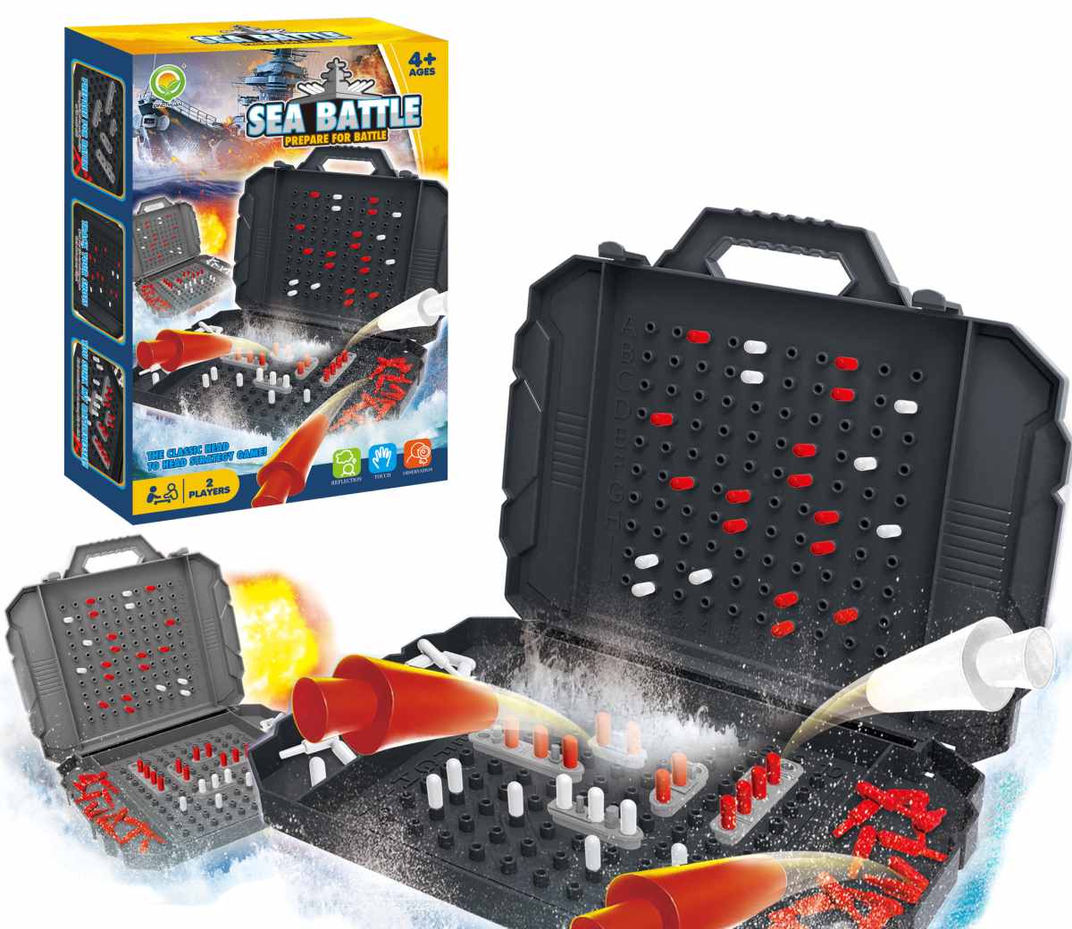 Hra námorná bitka pre dvoch hráčov. Balenie obsahuje 2 hracie plochy, 2 sady vojnových lodí, 2 sada červených kolíkov, 4 sady bielych kolíkov. Nevhodné pre deti do 3 rokov.